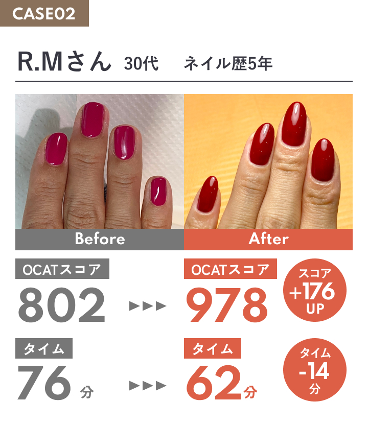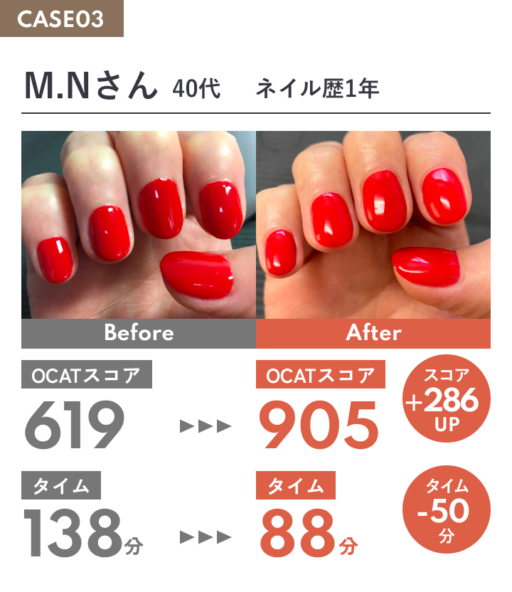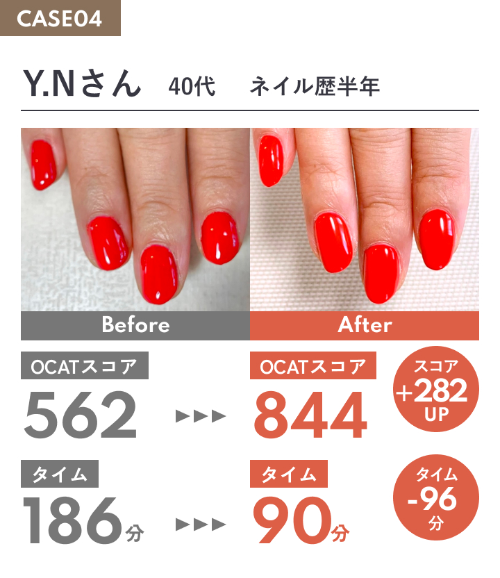 ワンカラーは、ごまかしの効かない施術です。基礎技術の差が、そのまま仕上がりの美しさに表れます。